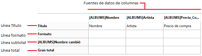 Este modo le permite mostrar su informe como una tabla de dos dimensiones. Es útil cuando se desea mostrar los datos de una fuente de datos desglosados en categorías que son en realidad una función de otras dos fuentes de datos. Por ejemplo, un formulario tablas cruzada permitirá mostrar, en una tabla, cuántos de cada tipo de producto se vendieron en cada trimestre. La siguiente es un informe rápido típico de tipo tabla cruzada: