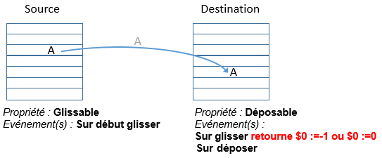 Notez qu'un objet "glissable" et "déposable" peut être déposé sur lui-même (à moins que vous n'interdisiez cette opération, reportez-vous aux paragraphes suivants).