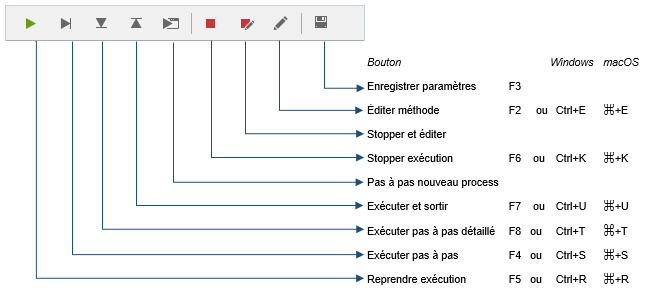 Raccourcis du débogueur