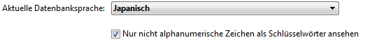 Um Mecab zu deaktivieren, aktivieren Sie einfach die Option Nur nicht-alphanumerische Zeichen für Schlüsselwörter berücksichtigen: