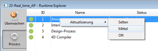 Die Zeitspanne, in welcher die Daten aktualisiert werden sollen, lässt sich über ein Kontextmenü einstellen (rechter Mausklick auf eine Zeile).