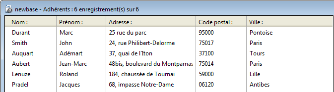 1) Vous souhaitez inclure les valeurs de tous les champs de la table [Adhérents] :