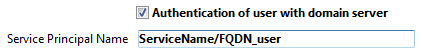 ケルベロスを認証プロトコルとして使用したい場合、データベース設定ダイアログボックスのC/Sの公開オプションページ内のサービスプリンシパル名(SPN)オプションに入力をする必要があります: