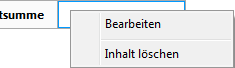 Um Text in einer Zelle zu ändern, doppelklicken Sie in die Zelle, um in den Bearbeitungsmodus zu wechseln. Mit rechtem Mausklick können Sie ein Kontextmenü anzeigen, um den Zelleninhalt zu bearbeiten oder zu entfernen: