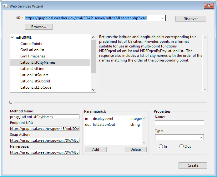作成ボタンを使用すると、選択した Web サービスに対応するプロキシメソッドが生成されます。