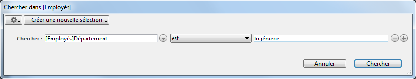 2. Conservez "[Employés]Département" comme critère de recherche et "est" dans la liste des comparateurs, puis saisissez "Ingénierie" :
