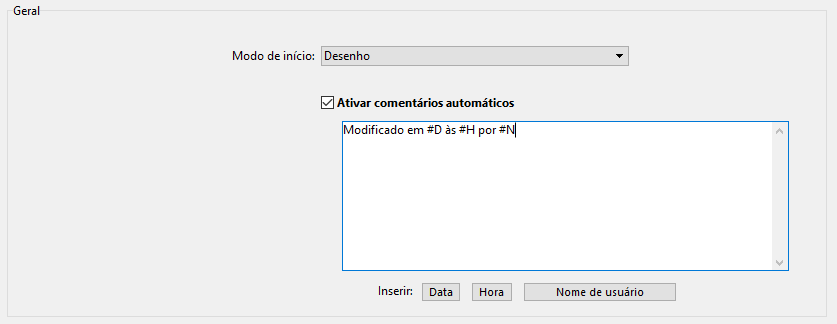 2. Na página Geral, selecione a opção Ativar os comentários automáticos