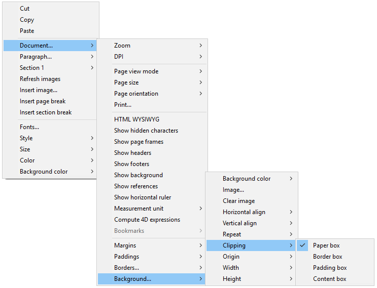 ユーザーは以下のように、コンテキストメニューを通じて背景属性を変更することが可能です: