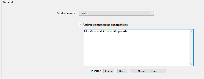 - En la página General, seleccione la opción Activar los comentarios auto.