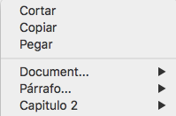 Además, las nuevas propiedades de párrafo específicas están disponibles en el submenú Párrafo...:
