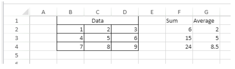 Desea recuperar las fórmulas en las columnas Sum y Average de este documento: