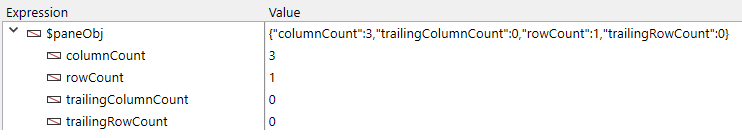El comando devuelve un objeto que describe las columnas y líneas congeladas. Este objeto puede contener las siguientes propiedades: