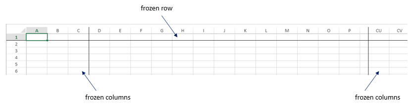 Objeto contendo informação sobre colunas e linhas congeladas | |||||