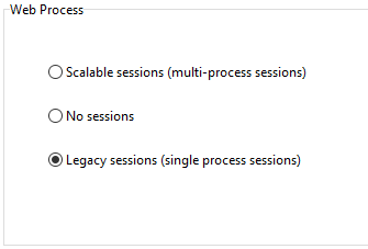 A partir de 4D v18 R6, se recomenda utilizar a implementação de sessões web escalonáveis. Pode habilitar sessões escalonáveis em suas aplicações convertidas selecionando a opção apropriada na configuração da aplicação, a função webServer.start( ) ou através do comando WEB SET OPTION.
