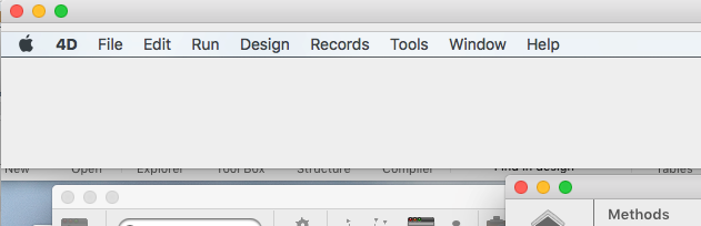 Toolbar form windows and macOS full screen mode: If your application displays both a toolbar window and standard windows that support full screen mode (Form has full screen mode Mac option), interface rules require that you hide the toolbar when a standard window enters full screen mode. To know if a window has switched to full screen mode, just test whether its vertical size is exactly the same as the screen's height (see the HIDE TOOL BAR command).