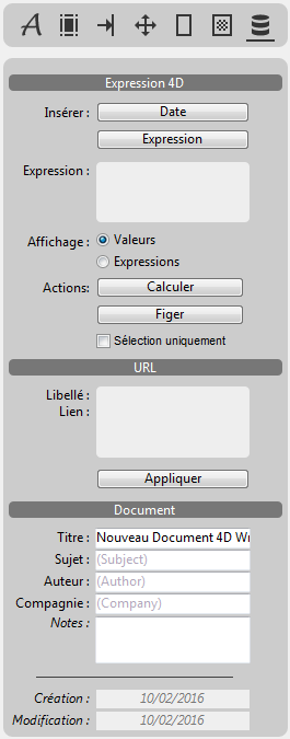 Note : La zone 4D Write Pro doit avoir le focus pour que les parties Expression 4D et URL du panneau soient actives.