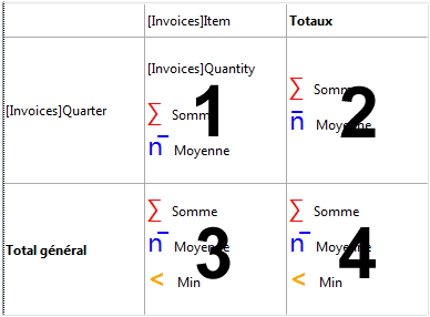 4 = Appliqué aux valeurs de la dernière colonne et de la dernière ligne