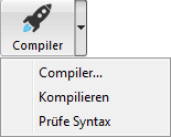 Um das Dialogfenster Compiler aufzurufen, wählen Sie im Menü Design oder in der Werkzeugleiste im DropDown-Menü zum Icon Compiler den Befehl Kompilierung starten bzw. Kompilieren: