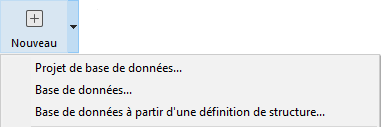 Note de compatibilité : Les éléments Base de données... et Base de données à partir d'une définition de structure... ne s'affichent plus par défaut (4D recommande l'utilisation de l'architecture projet pour un nouveau développement). Pour les afficher, vous devez sélectionner l'option dans les Préférences.