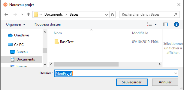 Note : Il n'est pas possible de créer une base projet depuis une définition de structure.