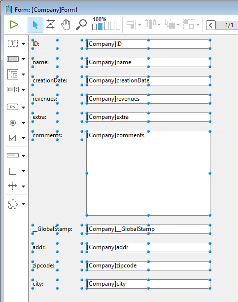 Nota: Se sua tela é muito pequena para criar um formulário de tamanho suficiente para conter todos os campos selecionados, o assistente cria um formulário multipáginas, e coloca todos os botões e objetos estáticos na página 0. Quando editar esse tipo de formulário, primeiro exiba a página 0 para poder editar esses objetos.