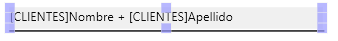 • Puede concatenar dos campos soltando el segundo campo en el primero. Se separan automáticamente por un espacio. Si mantiene presionada la tecla Mayús, se separan por un retorno de carro. Esto le permite crear, por ejemplo, etiquetas de direcciones utilizando varios campos superpuestos *Dirección1, Dirección2, etc.), sin generar una línea vacía cuando una dirección requiere sólo un campo.