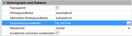 Dann können Sie die Darstellung der ausgewählten Zeilen über folgende Einträge in der Eigenschaftenliste definieren:
