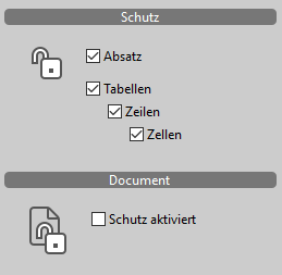 Um die Änderung geschützter Teile zu verhindern, markieren Sie im Bereich Dokument die Option Schutz aktiviert.