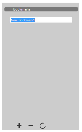 To create a bookmark, select the range of text you want to bookmark and then click on the button at the bottom of the panel: a "New_Bookmark1" label appears in the list. You can rename a bookmark at any time; clicking on a bookmark that is highlighted in the list switches its label to editing mode. Bookmark names must be comprised of standard alphanumeric characters.
