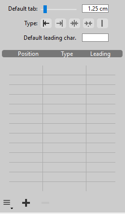 Clicking on the button adds a new default tab stop to the paragraph. You can delete a tab stop by selecting it in the list and clicking the