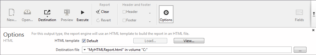 レポート出力先が"HTML"に設定されている場合、以下のオプションが利用可能です: