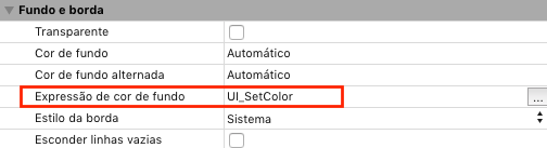 Pode então definir a aparência de linhas selecionadas usando uma ou mais das expressões abaixo especificadas na Lista de Propriedades: