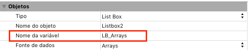 A variável associada ao objeto List box é utilizada para obter, fixar ou armazenar as seleções de filas do objeto.