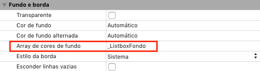 Para um array tipo list box, precisa adicionar um método de objeto para atualizar a propriedade Row Background Array: