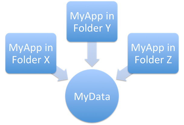 Esto puede no ser adecuado si desea duplicar una aplicación fusionada destinada a utilizar diferentes archivos de datos. Las aplicaciones duplicadas comparten la carpeta de preferencias de usuario de la aplicación y por lo tanto, siempre utilizan el mismo archivo de datos, incluso si el archivo de datos cambia de nombre, ya que el último archivo utilizado para la aplicación se abre.