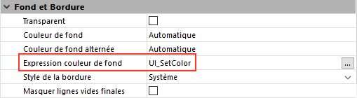 Ces fonctionnalités sont gérées via le tableau de propriétés Tableau de contrôle des lignes, que vous pouvez désigner à l'aide de la commande LISTBOX FIXER TABLEAU ou via la Liste des propriétés :