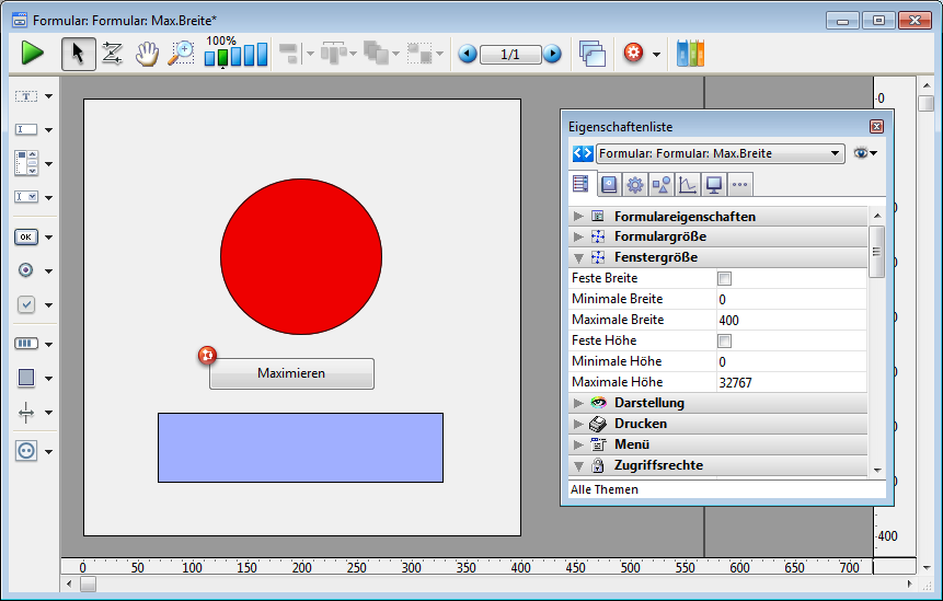 Dieses Beispiel zeigt, wie die Größeneinschränkung unter Windows (MDI Modus) gehandhabt wird. Nachfolgendes Formular hat die Größeneinschränkung: maximale Breite=400: