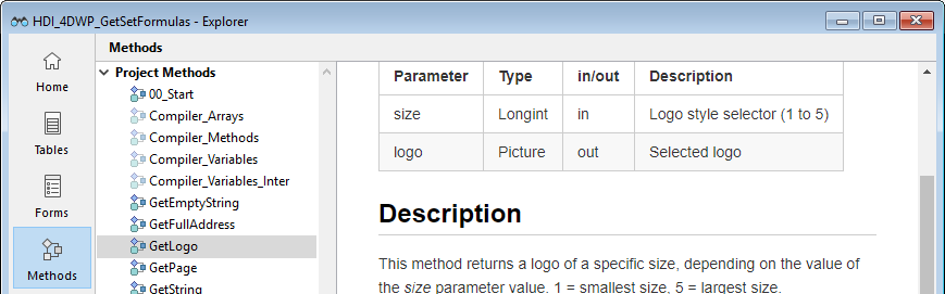 La documentación modificada por este comando se muestra en el explorador de 4D (no debe confundirse con líneas de comentarios en el código que son recuperadas utilizando METHOD GET CODE).