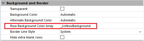 配列タイプのリストボックスの場合、行背景色配列プロパティを更新するために、オブジェクトメソッドを追加する必要があります: