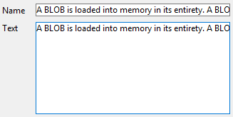 In single-line areas, only the last word that can be displayed entirely is displayed. 4D inserts line returns; it is possible to scroll the contents of the area by pressing the down arrow key.
