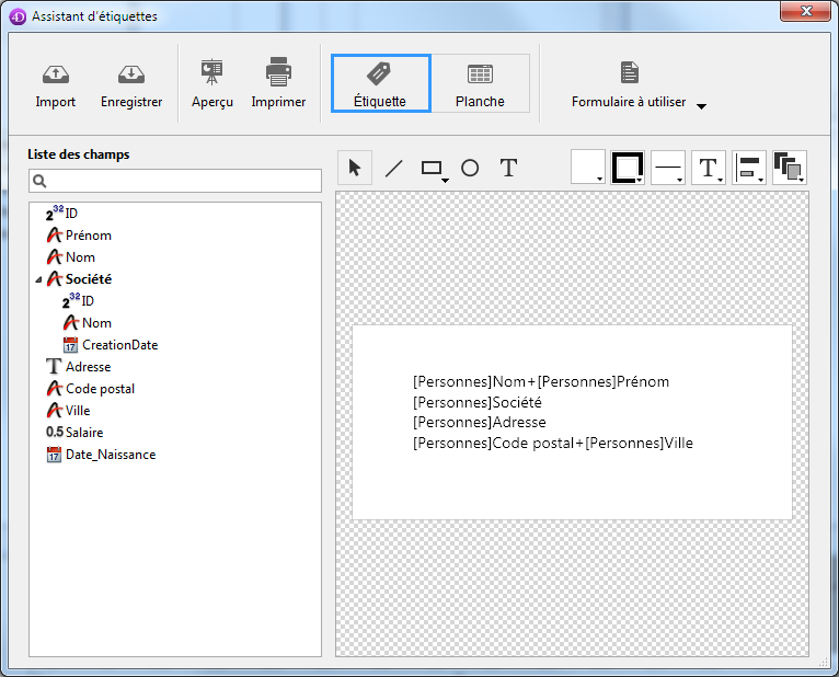 Note : Si laTable a été déclarée “invisible” en mode Développement, l'assistant de création d'étiquettes n'apparaît pas.