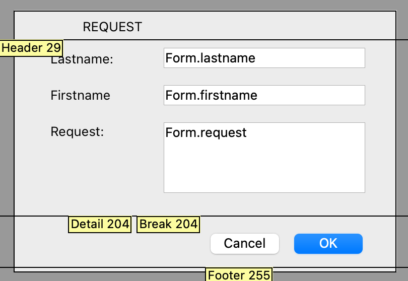 Atenção: Sub-formulários não são impressos com Print form. Para imprimir apenas um formulário com esses objetos, use PRINT RECORD.