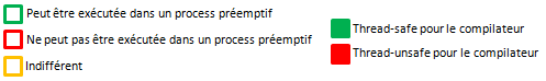 Peut être exécutée dans un process préemptif | capable | Vérifie la compatibilité et retourne des erreurs si incompatible | thread-safe | Préemptif |