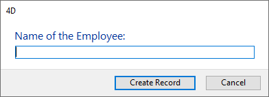 vsPrompt:=Request("Name of the Employee:";"";"Create Record";"Cancel")