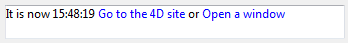 <span>It is now <span style="-d4-ref:'Current time:C178'"> </span> <a href="http://www.4d.com">Go to the 4D site</a> or <span style="-d4-ref-user:'openW'">Open a window</span></span>