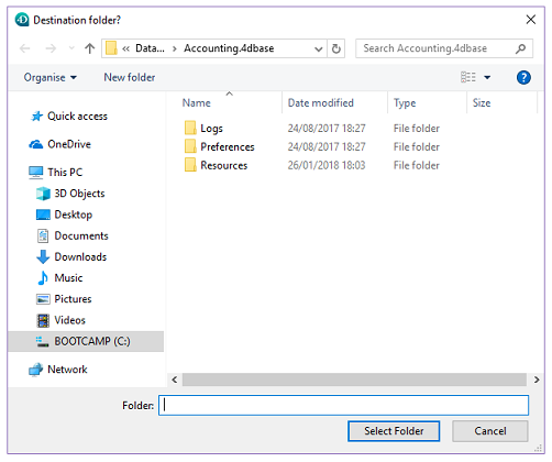 4D v20.1Select folder |