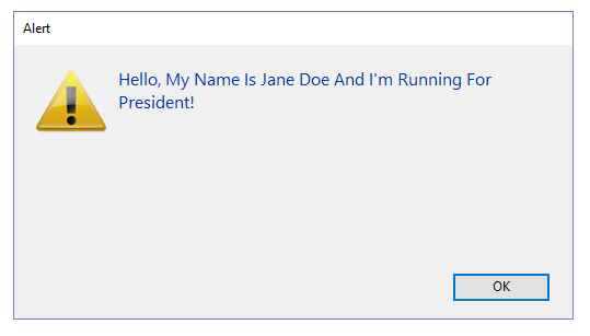 ALERT(Capitalize text("hola, mi nombres es Juan Díaz y soy candidato a presidente!"))