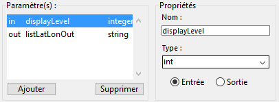 Pour ajouter un paramètre, cliquez sur le bouton Ajouter puis définissez ses caractéristiques dans la zone Propriétés.