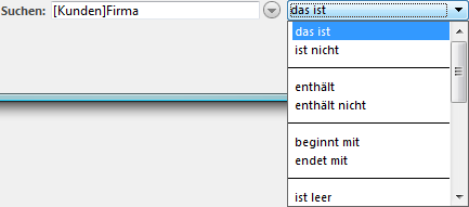 Dieses Menü definiert die auszuführende Suchaktion, sie basiert auf der aktuellen Auswahl der vorhandenen Datensätze.