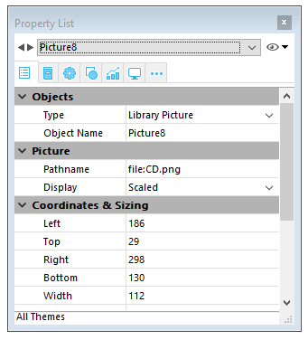 • This also works with library pictures, pictures associated with objects (for example a 3D picture button) and fields or variables in Application mode.